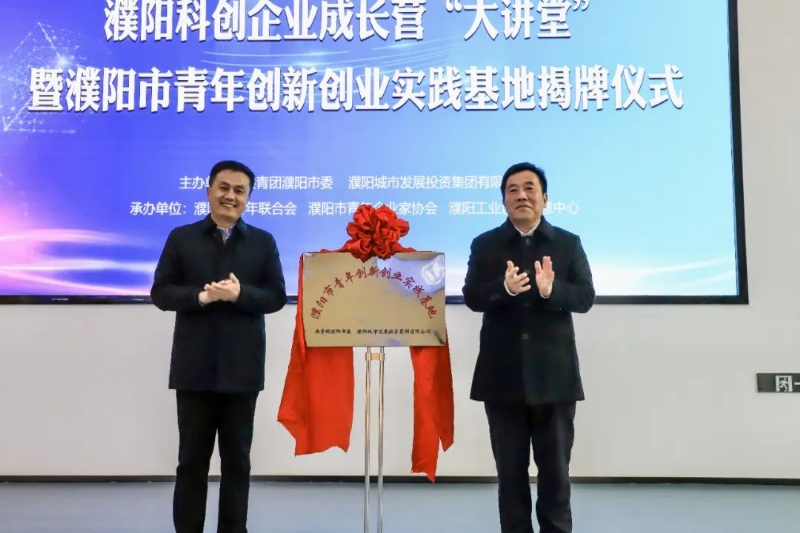 團(tuán)市委副書記閆兆敏、濮陽城發(fā)投集團(tuán)總經(jīng)理閆進(jìn)軒為濮陽市青年創(chuàng)新創(chuàng)業(yè)實踐基地揭牌。