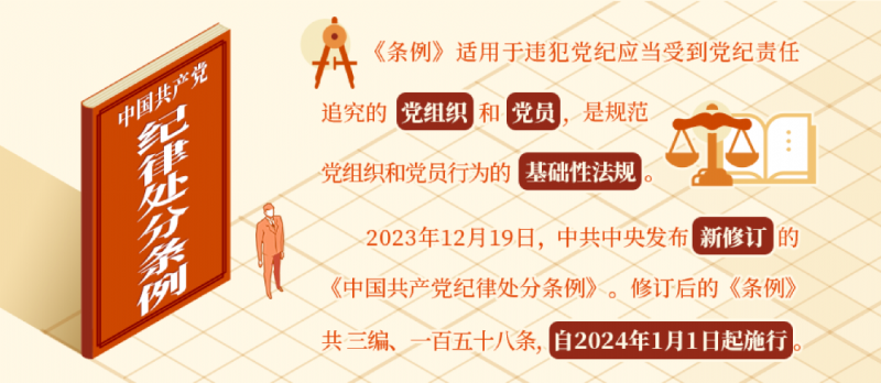 2023年12月19日,中共中央發(fā)布新修訂的《中國共產(chǎn)黨紀(jì)律處分條例》。修訂后的《條例》共三編、一百五十八條,自2024年1月1日起施行。