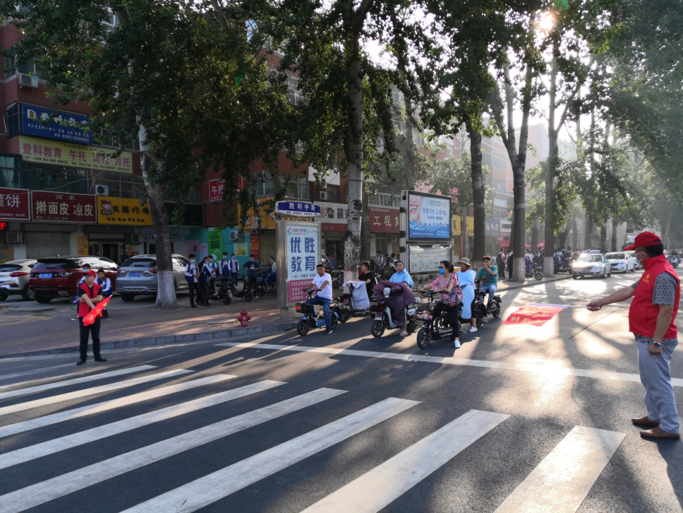 雖然天氣炎熱,志愿者們依然堅守崗位,認(rèn)真開展"文明交通"勸導(dǎo)活動。身穿紅馬甲,手持指揮旗,志愿者每兩人一組整齊地站在斑馬線兩側(cè),積極勸導(dǎo)身邊的行人,不放過任何一種違反交通規(guī)則的行為,使得路口交通秩序井然有序。志愿者們在交通執(zhí)勤過程中,還不忘熱心幫助他人,攙扶老人、孩子、殘疾人過馬路,為問路人指明方向等等,受到過往行人的陣陣好評同時及時勸導(dǎo)行人不按信號燈通行、電動車逆行、不按道行駛等不文明行為,并呼吁廣大市民積極響應(yīng)創(chuàng)建全國文明城市文明交通勸導(dǎo)活動,彰顯“全國文明單位”良好形象。